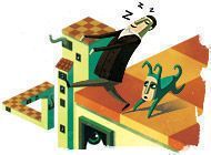 In Back to Bed you have to guide the sleepwalker Bob from his sleep inducing office to the safety of his bed by controlling his subconscious guardian Subob, whose job it is to both guide and protect the sleepwalking Bob.